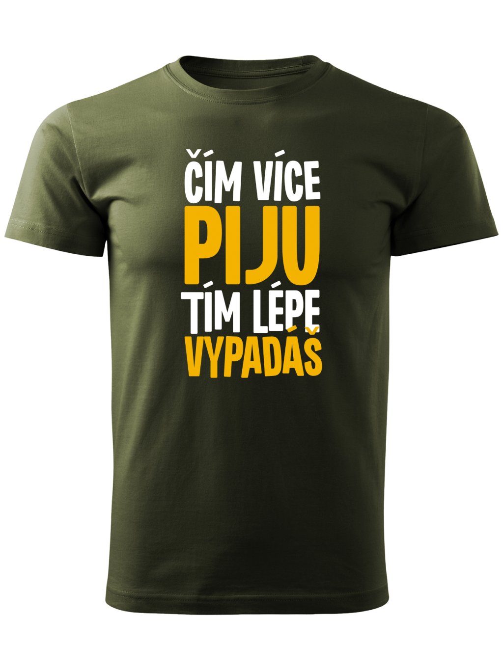 Pánské tričko s potiskem ČÍM VÍCE PIJU, TÍM LÉPE VYPADÁŠ