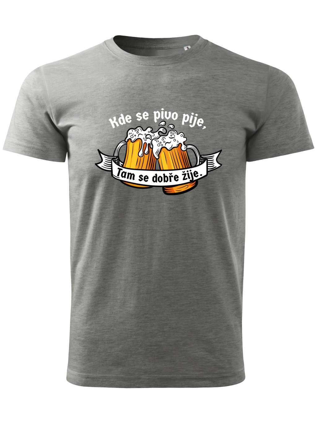 Pánské tričko s potiskem KDE SE PIVO PIJE, TAM SE DOBŘE ŽIJE