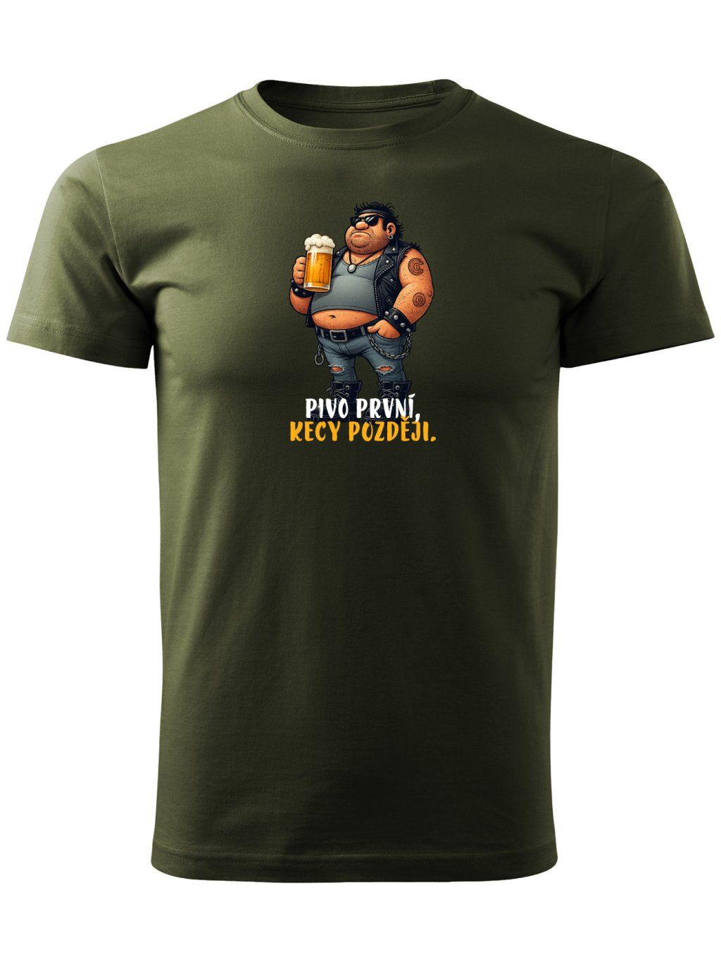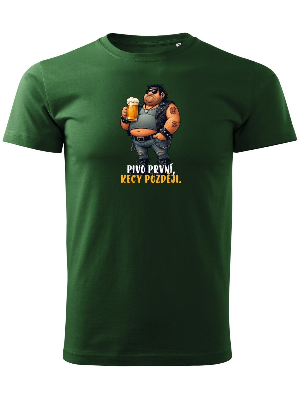 Naše trička ze 100% bavlny si prostě zamilujete. Jsou velice příjemná na dotek, mají fakt super střih, díky kterého sednou úplně každému. Myslíme i na velké chlapy, takže trička nabízíme až ve velikosti 4XL. Máme také několik barevných variant - černou, tmavě modrou, láhvově zelenou, žlutou a šedý melír. Při potisku triček pracujeme opravdu důkladně. Tiskneme je aktuálně nejoblíbenější tiskovou technologií na světě - DTF. Potisky mají dlouhou životnost, udržují si své syté barvy a vypadají stále jako nové. Na toto tričko se můžete zkrátka spolehnout. Vyjádříte tím svou lásku k tomu nejcennějšímu - pivu. Zároveň je to také skvělý dárek, který ocení nejeden pivař na jakoukoliv příležitost.